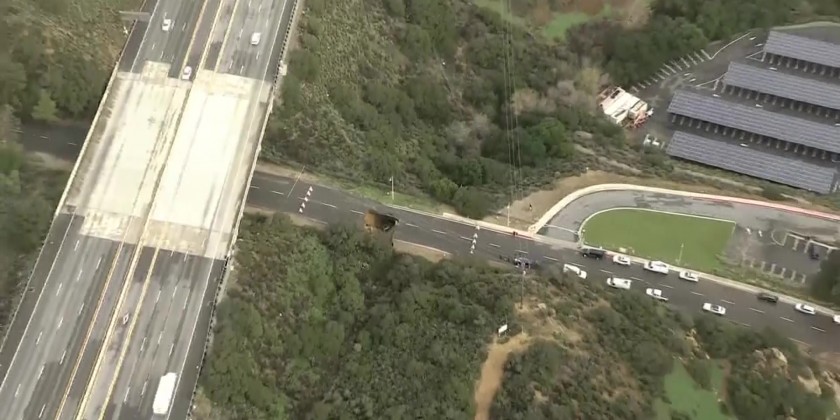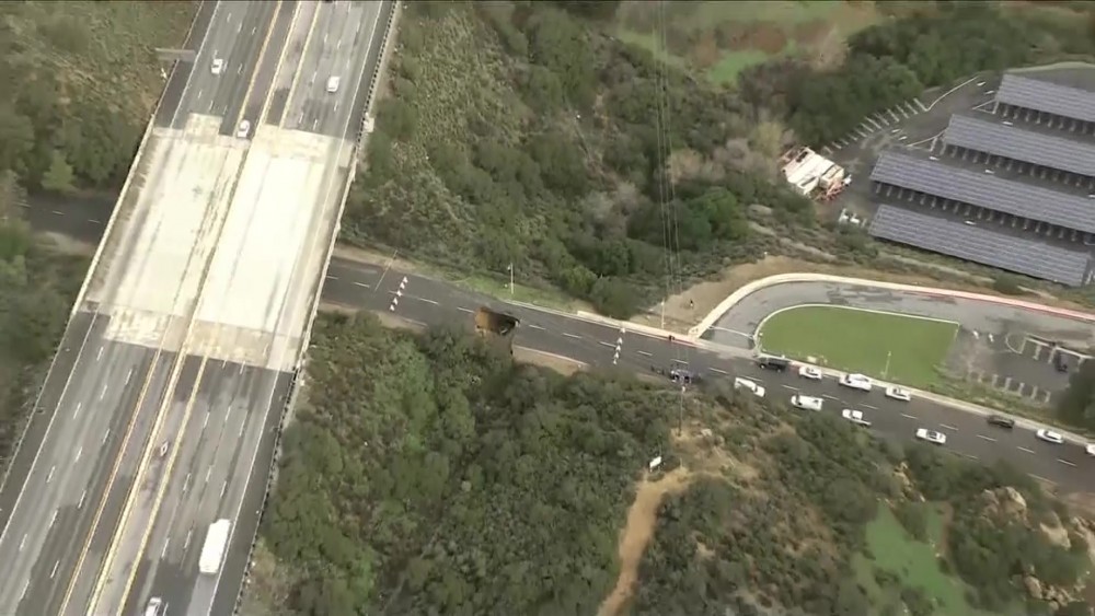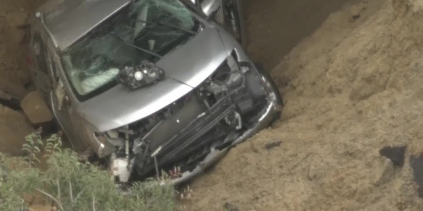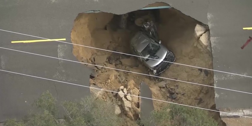 Sinkhole swallows 2 cars as storm pummels LA