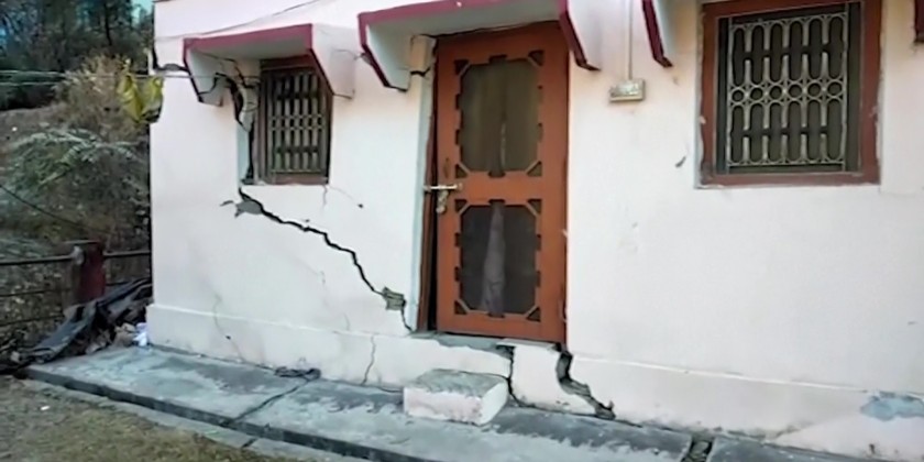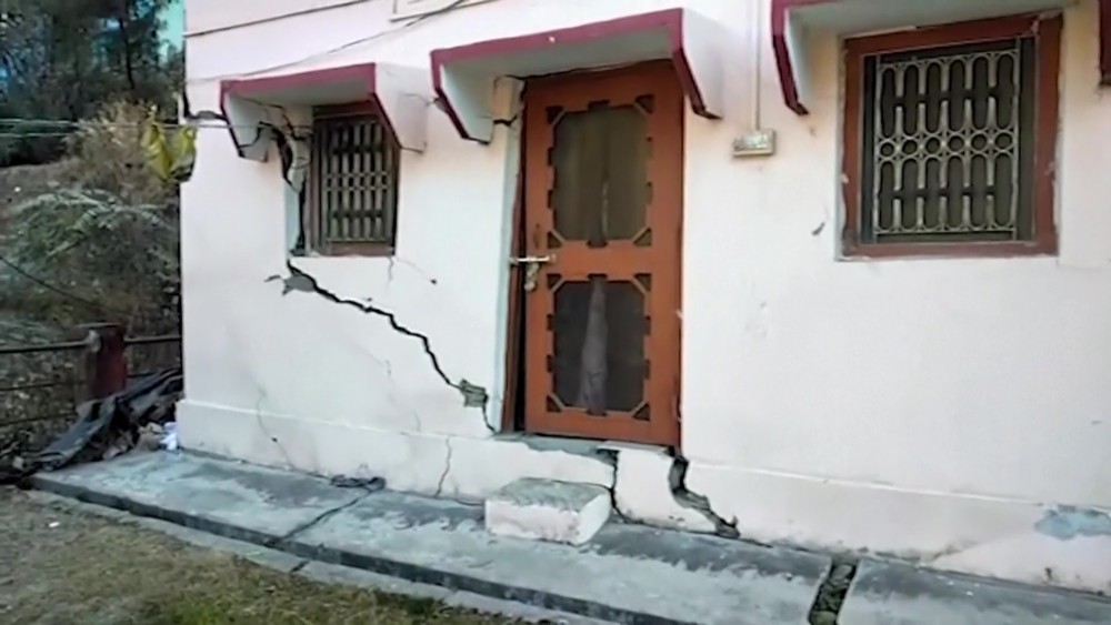 Authorities in an Indian Himalayan town have stopped construction activities and started moving hundreds of people to temporary shelters after a temple collapsed and cracks appeared in over 600 houses because of sinking of land, officials said Saturday.