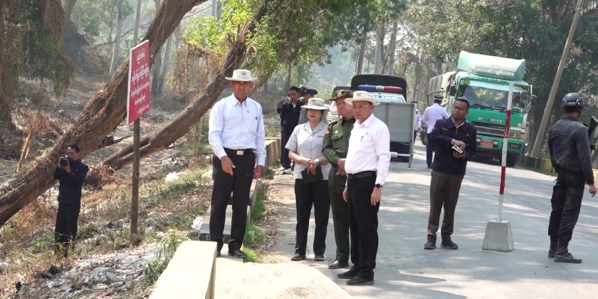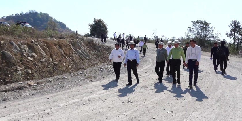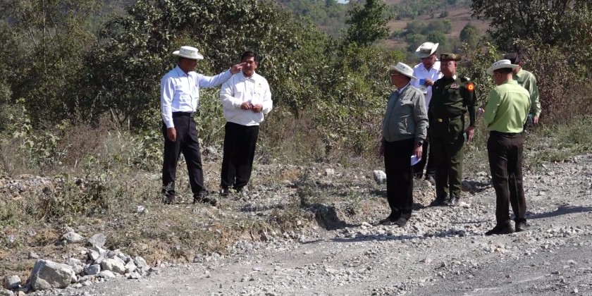They examined the need for road repairs near the bamboo grove at the ascent area and the planned location for rectifying an "S" curve along the route (Lay Mile gway-Naungtali-Nyomee-Naungpanava-Linkwin-Htiri  /Livestock Zone Road).