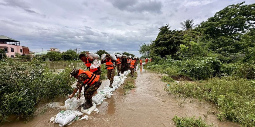 In Kyaukse Township of Mandalay Region, heavy rain on September 10 has caused the Zawgyi River to rise. In the morning on the Wednesday, the Kyaukse District Disaster Management Team was working to prevent flooding in the Kyet Min Tonn neighborhood by placing sandbags.