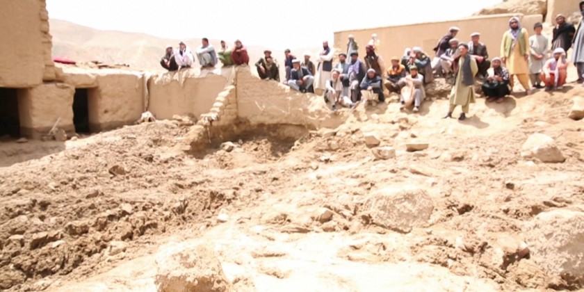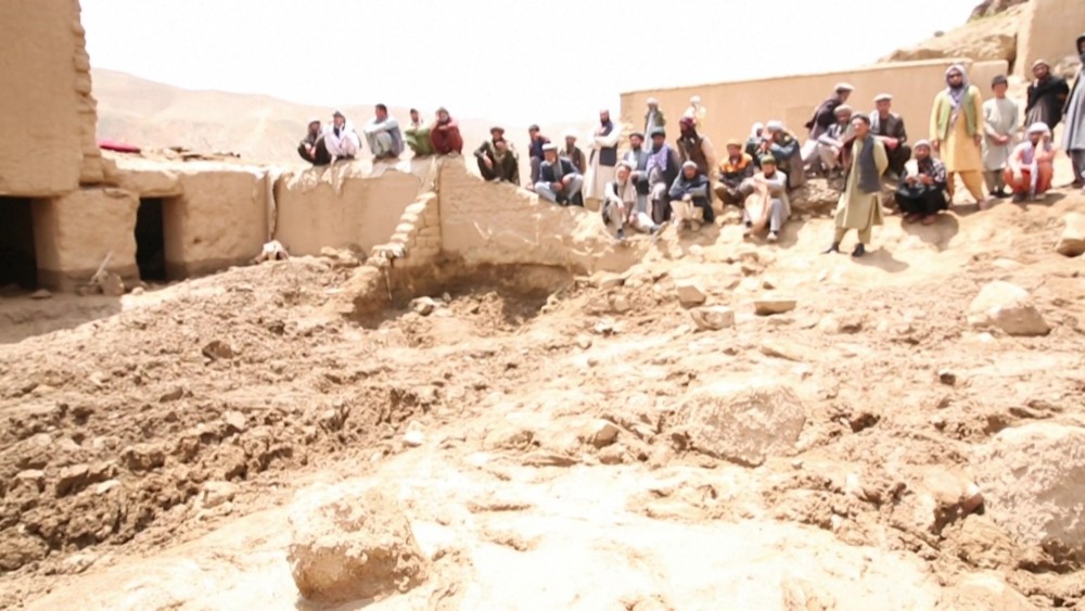 Destruction due to devastating floods seen in Madrassa village in central Afghanistan, where six people were killed and dozens of homes washed away after heavy rains were funneled down mountain valleys.