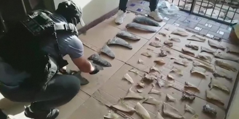 The Panamian National Police seized more than six tons of shark fins, which are highly prized for a popular soup in East Asia, in an operation in which five people were arrested, officials said.