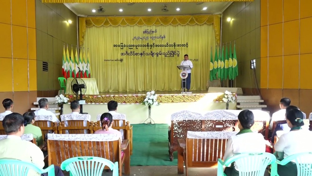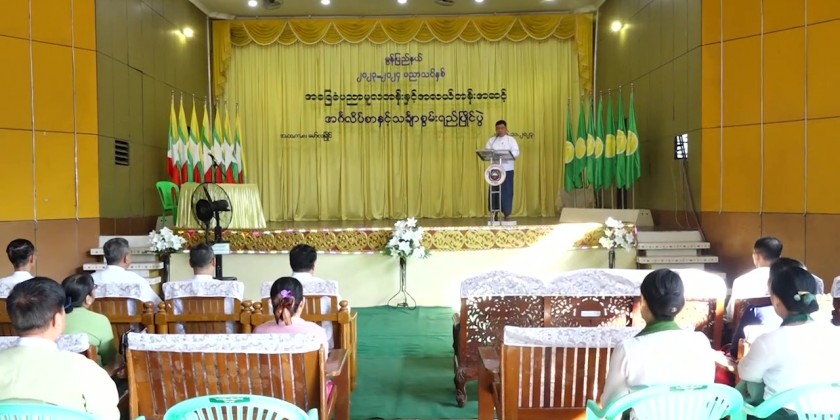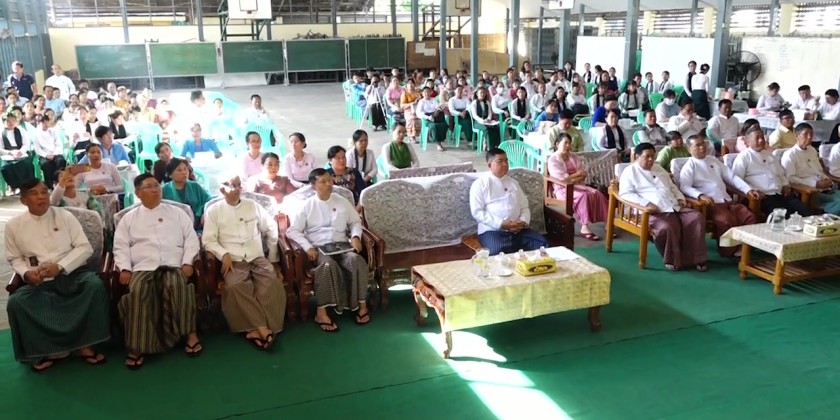 Mon State Chief Minister U Aung Kyi Thein attends and encourages the 2023-24 English and Mathematics Skills Competition for Basic Education Primary and Middle Schools students on Sunday. The regional level competition is held at No.8 Basic Education High School in Mawlamyaing of Mon State.