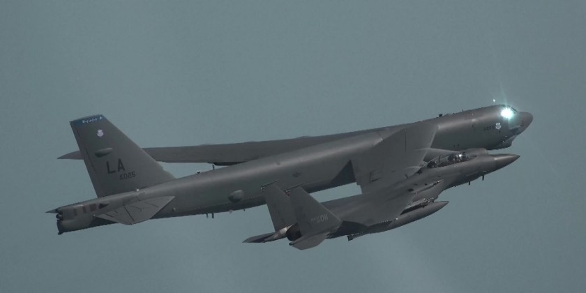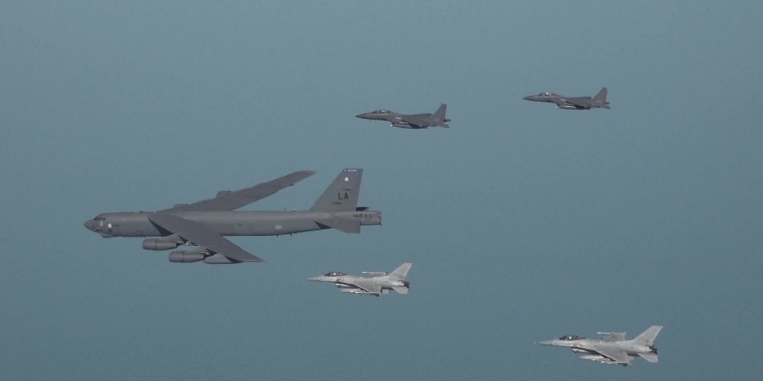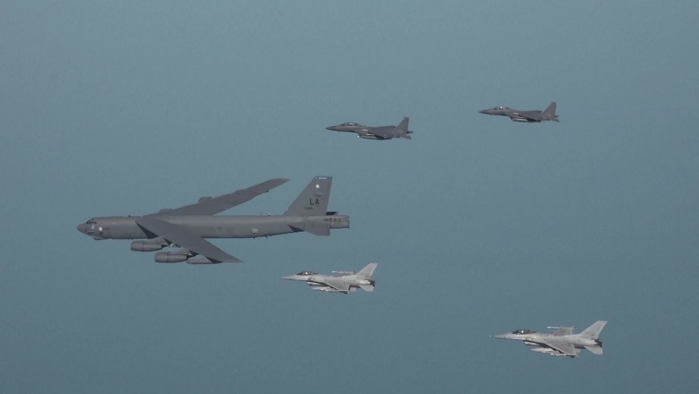 South Korea and the United States held joint air drills over the Yellow Sea on Monday. The exercise involved at least one US nuclear-capable B-52H strategic bomber and F-15K and KF-16 fighter aircrafts of the South Korean Air Force.