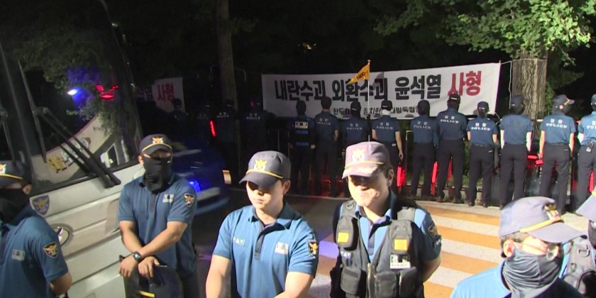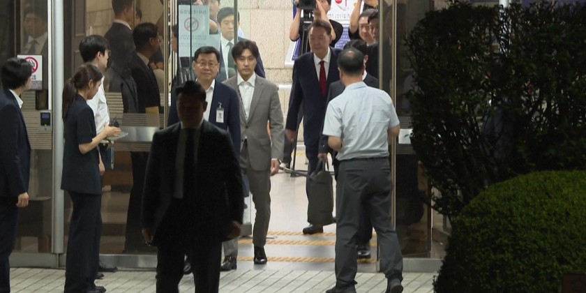 South Korea's former president Yoon Suk Yeol exited the Seoul Central District Court and was escorted to the Seoul Detention Center late Wednesday after attending a hearing that lasted about seven hours.