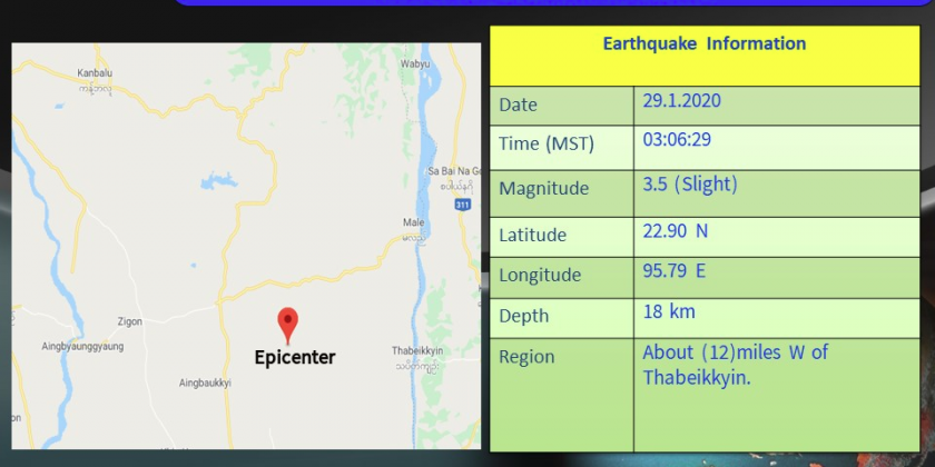 Slight Earthquake: 3.5-Magnitude Earthquake Hit West Of Thabeikkyin Township