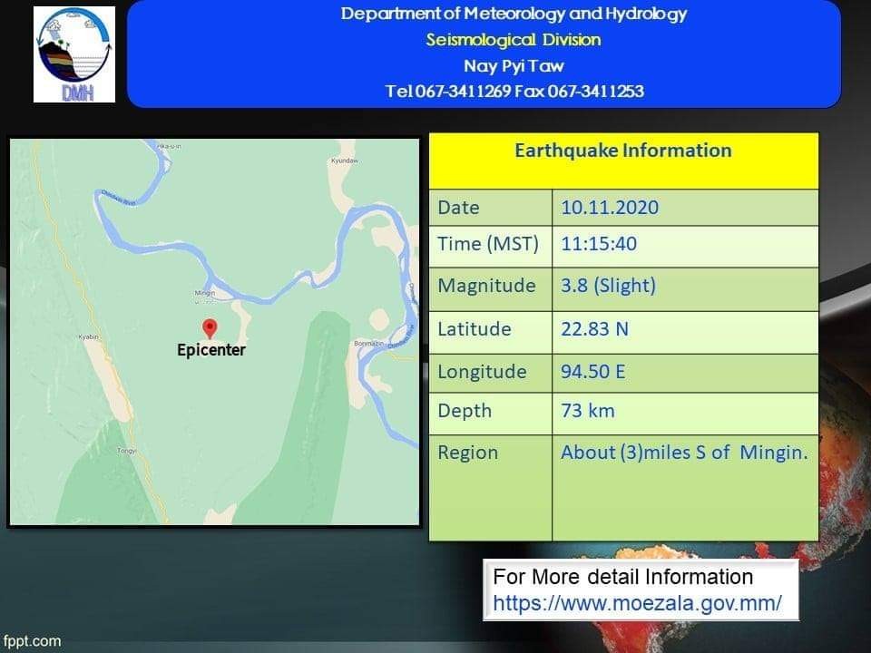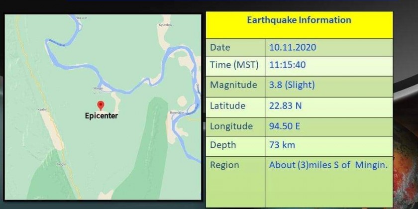 SLIGHT EARTHQUAKE: 3.8-MAGNITUDE EARTHQUAKE HIT SOUTH OF MINGIN