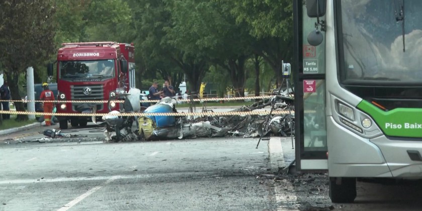 A small plane crashed onto a busy road in Brazil’s Sao Paulo on Friday, killing two people aboard and injuring seven others on the ground. The plane, a King Air F90 twin-engine turboprop, took off from Sao Paulo at around 07:00 local time en route to Porto Alegre in Southern Brazil.