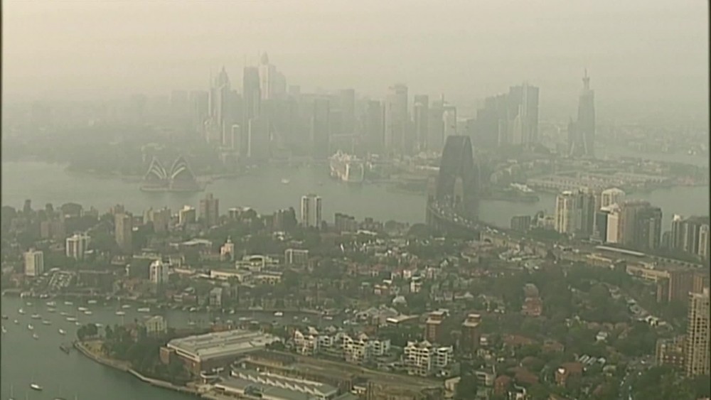 Smoke haze continued to cover Sydney's central business district on Friday. Aerial footage showed the iconic harbor and landmarks Sydney Harbor Bridge and Opera House blanketed by smoke. Australia is prone to bushfires in its dry, hot summers, but the recent series of fierce blazes have been sparked early, in the southern spring, after a three-year drought that has left much of the country tinder-dry.