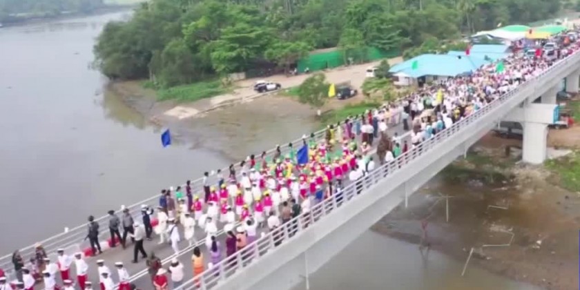 It will support improving socio-economic life of the locals. After spoke words of thanks by a local, member of SAC Mahn Nyein Maung, the Union Minister for Construction, the Ayeyawady region chief Minister, the Commander of South-West Command and the Region Security and Border Affairs Minister formally opened the bridge.