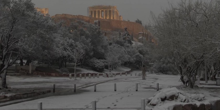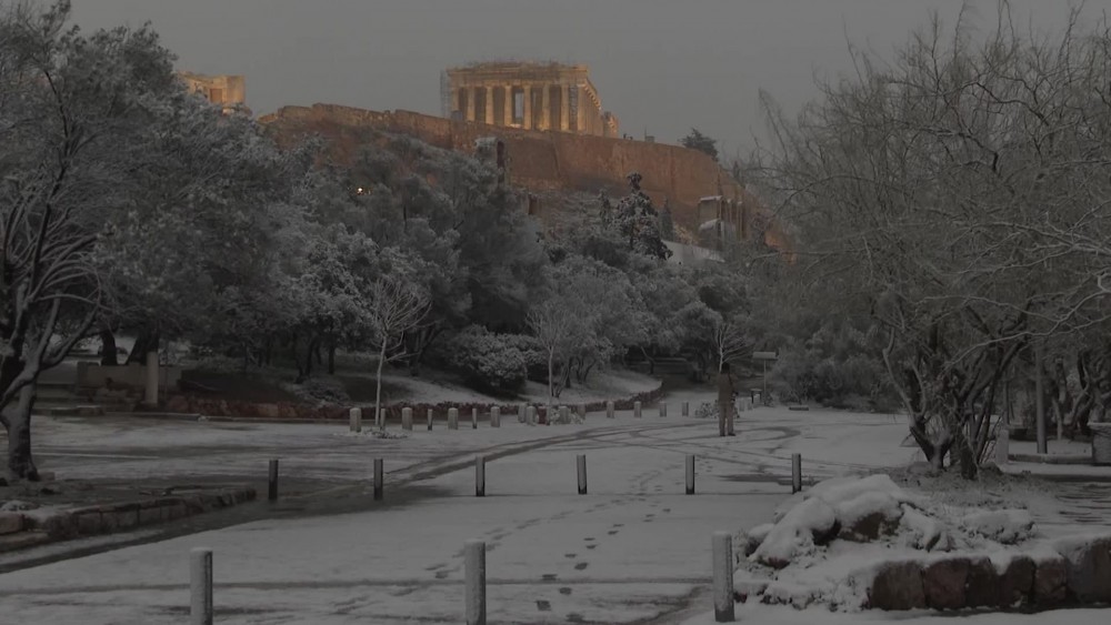 Snow in Greece dusts Acropolis, halts services