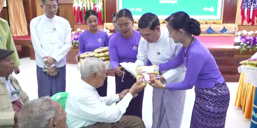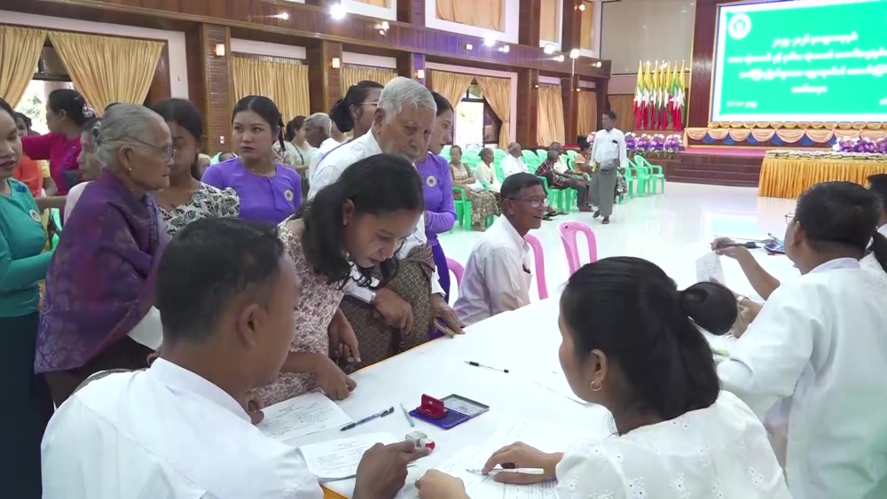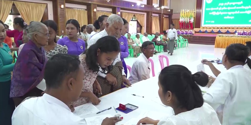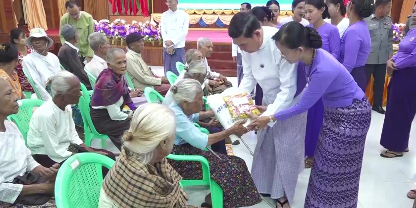 An event for providing social pensions to 202 elderly individuals aged 85 and above in Sittwe Township for the first and second quarters of the 2025-2026 fiscal year was held at the Khine Thazin Hall on the morning of November 11.