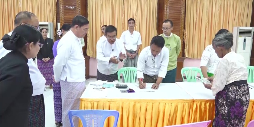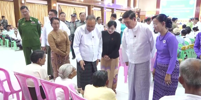 There, Rakhine State Chief Minister U Htein Lin and other responsible officials cordially greeted those who came to receive their social pensions. They then observed and encouraged the staff from the Department of Social Welfare and the Myanma Economic Bank as they carried out the necessary verification procedures for the pension disbursement.