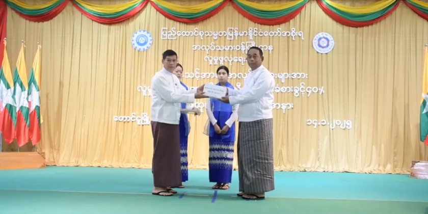 In Bago Region, 2,669 agencies and 77,710 workers are registered for 2024-2025 fiscal year. During the ceremony, 39.13 million kyats in benefits were distributed to 519 flood-affected insured workers from 56 agencies.