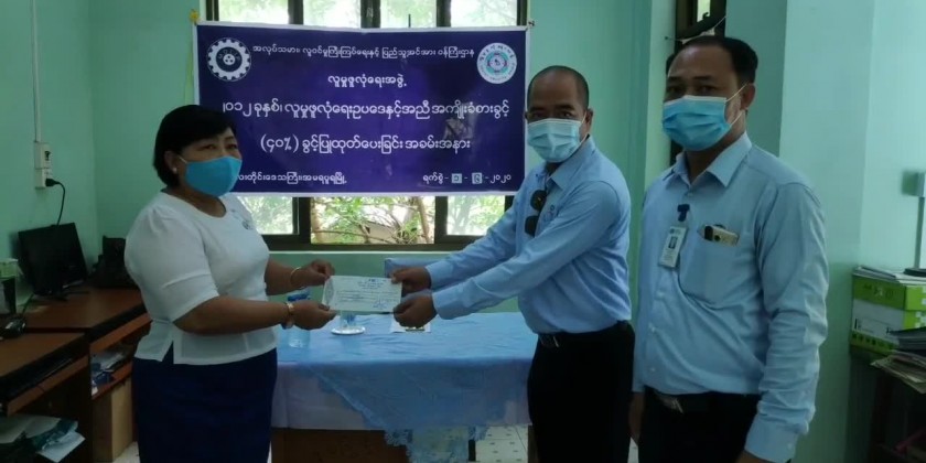 In-Charge, Regional Social Security Board, Hnin Hnin Phyo said “In Mandalay region, about 466 organizations have registered at the Social Security Board and there are about 5,589 employers who contributed monthly social security fund. Although the offices were arranged to reopen after the Myanmar New Year Festival earlier, unfortunately, they were closed till the 30th April to prevent the spread of COVID-19 disease. Today, Regional Social Security Board provided compensations to the workers for days when they were told to close their jobs during COVID-19 period.”