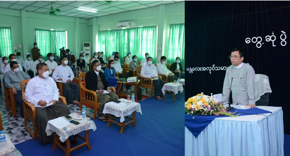 Union Minister for Labour U Myint Kyaing, together with officials, met with the Medical Superintendent, doctors, nurses and staff of Mandalay Workers’ Hospital in Aung Myay Thazan Township on December 29th.
