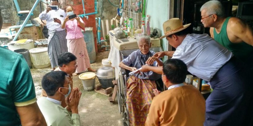 The government is providing social pensions to elder persons aged 85 years and above. On Sunday, officials conducted the provisions at Waibagi Myothit ward in North Okkalapa Township of Yangon East District.