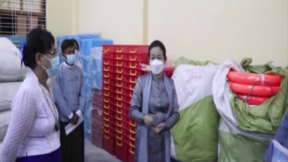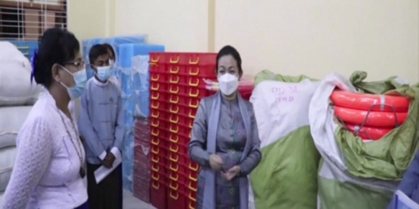 Next, the union minister went to the warehouse of Thandwe District head officer’s office and inspected status of storing 22 relief items in line with the warehouse manual and storage of materials for the regional development.