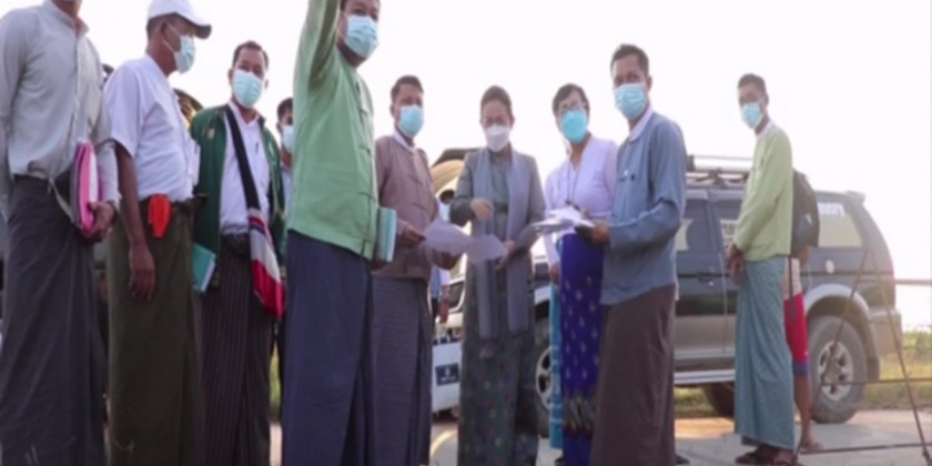 In the evening, the union minister arrived at Thandwe Township and inspected the land plots where the pre-school under the social welfare department and the office of the head officer of the disaster management department in Thandwe Township will be constructed.