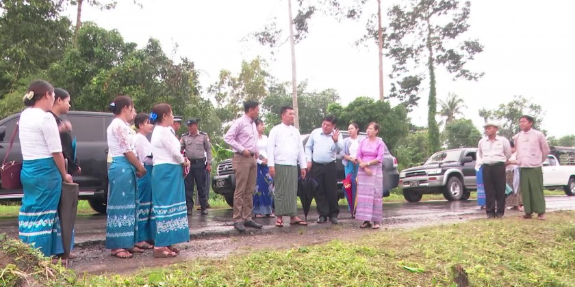 The Union Minister for Social Welfare, Relief and Resettlement Dr. Soe Win and Ayeyawady Region Chief Minister U Tin Maung Win observed the land plot on which Kan Gyi Daunt pre-school will be constructed in Ta Gone Gyi of Kan Gyi Daunt Town, Pathein Townbship in the morning on 13th September and gave guidance to construct a building with the design which will be suitable for the children.