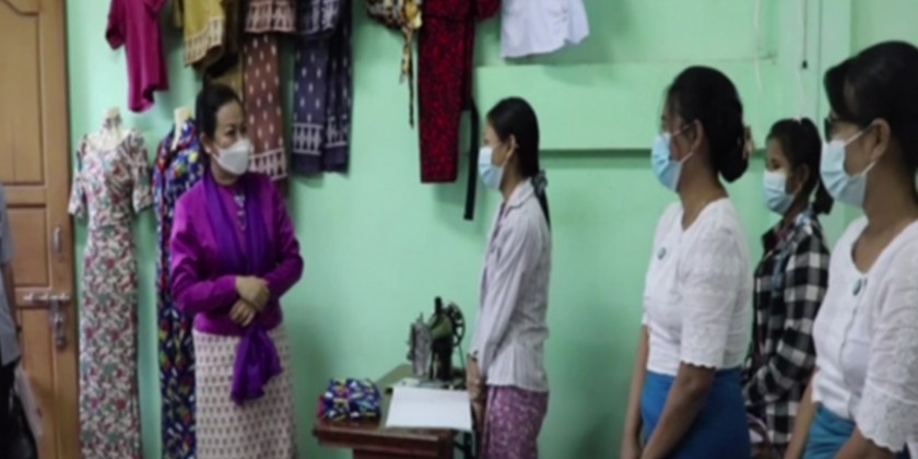 On December 16, in Sittwe, the Union Minister inspected the Childcare Center and provided snacks for the children. She also inspected the domestic vocational training school and stressed expansion of the courses with the help of experts. The Union Minister also met with staff from the Department of Social Welfare.