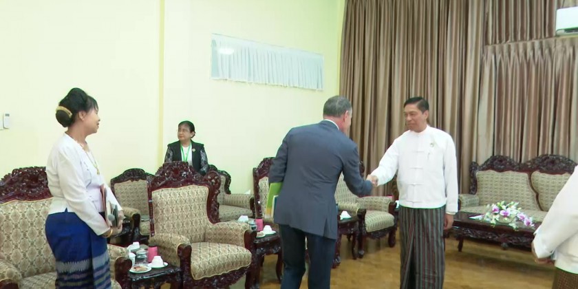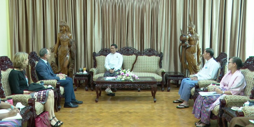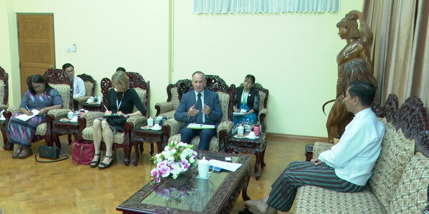 Union Minister for Social Welfare, Relief and Resettlement Dr. Soe Win received a delegation led by Mr. Marcoluigi Corsi, Resident Representative to Myanmar from United Nations Children’s Fund (UNICEF) at the Ministry on Thursday.