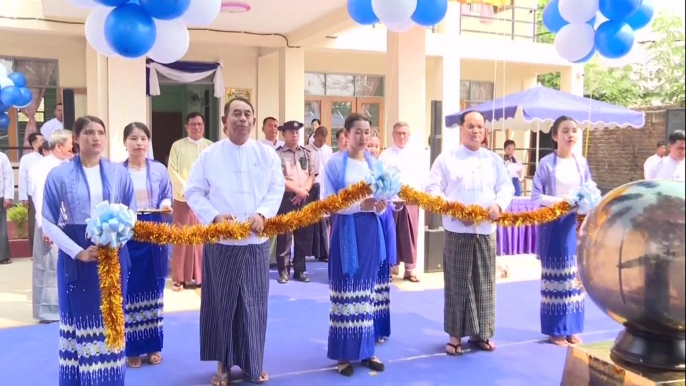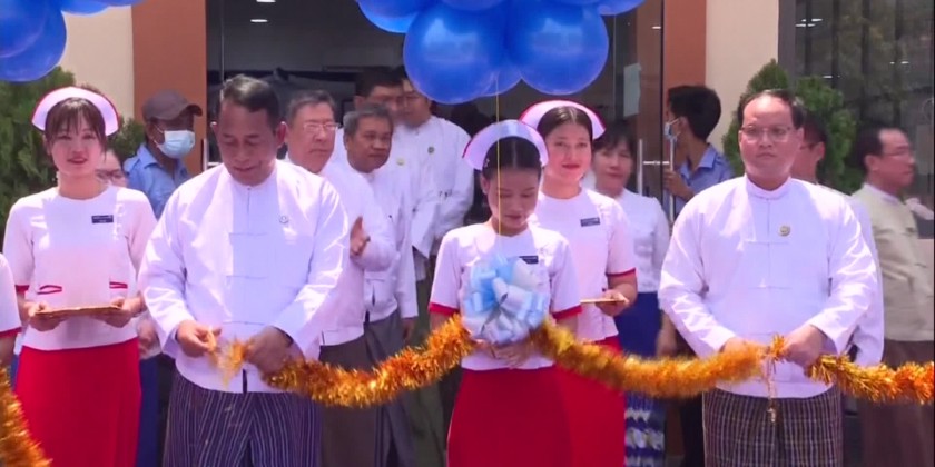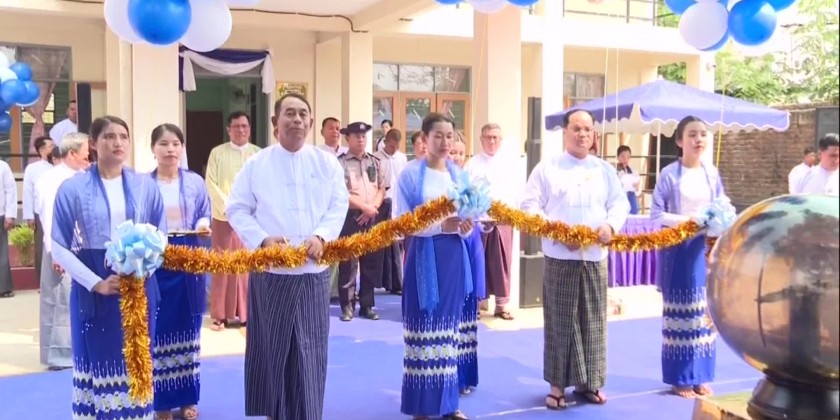 Then, the Union Minister, Chief Minister and Ethnic Affairs Minister inaugurated the office building by cutting the ceremonial ribbon. They then toured the clinic and office buildings.