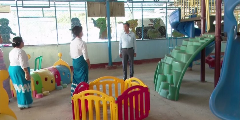 Moreover, vocational training courses are being conducted at the school in cooperation with Japan Heart, while encouraging to engage in various activities including Blind Chess and Goal Ball, as well as playing musical instruments. The Union Minister later visited ShweGonDaing Child Care Center and provided the needs.