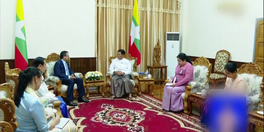 Union Minister for Foreign Affairs U Than Swe received Under-Secretary-General of IFRC for National Society Development and Coordination Mr. Milton Xavier Castellanos Mosquera on Sunday, in Nay Pyi Taw.