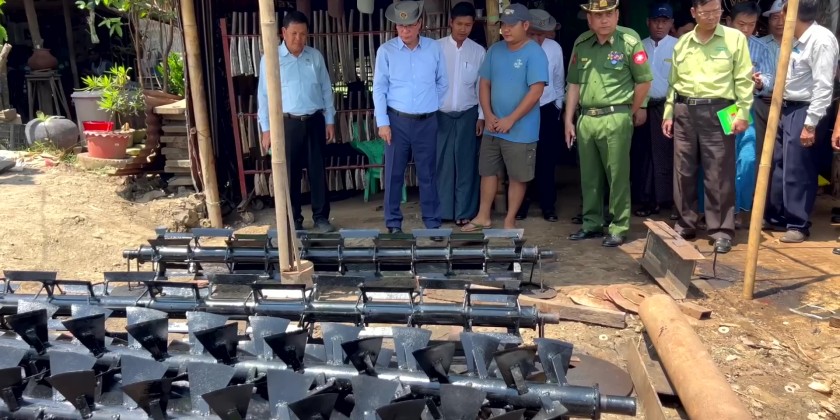Later, the Chief Minister visited Htet Ko Ko Blacksmith and Agricultural equipment stall, and oversaw the production of agricultural equipment. He also coordinated necessities on acquiring necessary technology assistance to produce modern equipment.