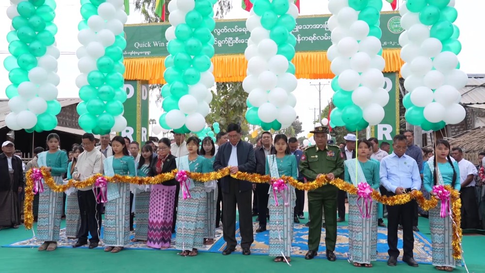 Chief Minister U Tint Lwin, together with the region ministers, departmental officials and locals, attended the opening ceremony of the new facility constructed under Quick Win Programme in 2025-2026 Fiscal Year. The ceremony commenced with the ceremonial ribbon cutting by the Chief Minister and officials.