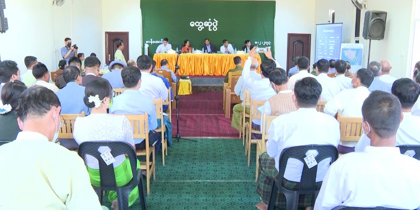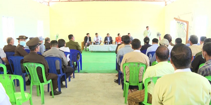 After that, the Union Ministers and the State Chief Minister attended a meeting for socio-economic development in Mann Aung and met departments, entrepreneurs and town elders. In response on the needs of social, economic, agriculture, transportation and electricity demands for the development in the township, Union Minister Lt-Gen Tun Tun Naung coordinated essentials.