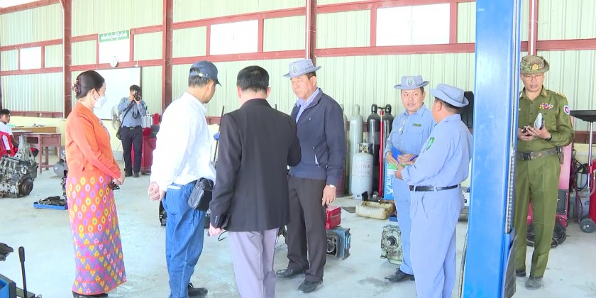 The Union Ministers and the State Chief Minister then proceeded to the Technical Training School for National Youths in Border Areas in Kyauk Phyu and looked into electrical, construction, mechanic and mobile reparing training courses and fulfilled the needs.