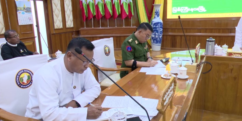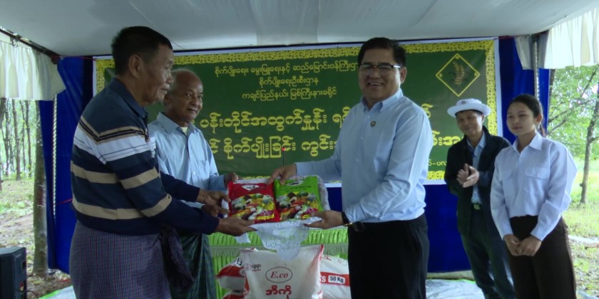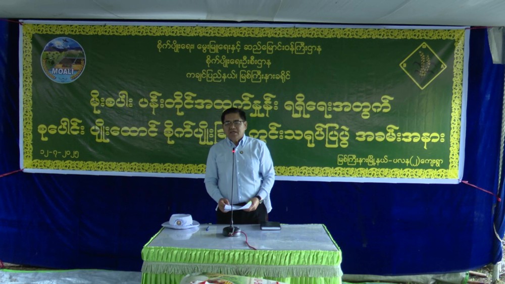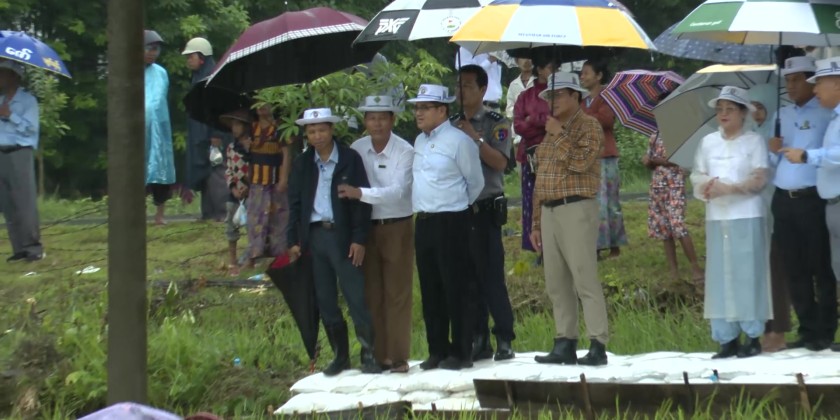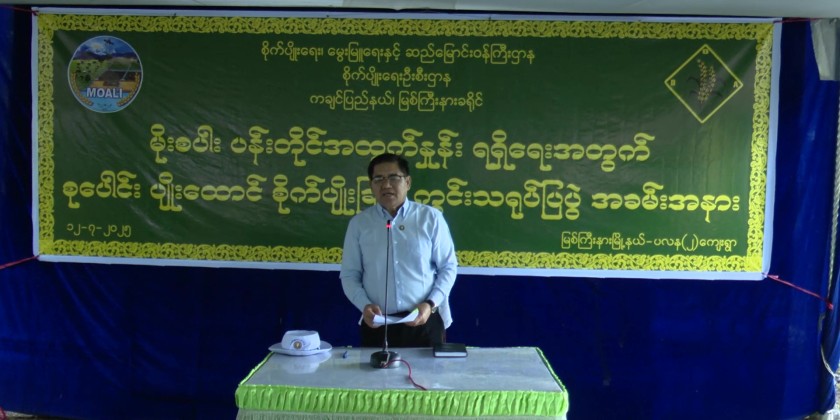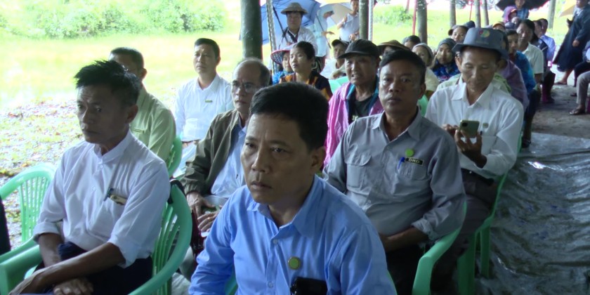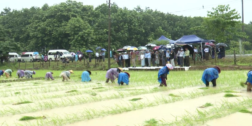Kachin State Chief Minister U Khet Htein Nan and officials on Saturday visited Gantgaw Myine village farm in Myitkyina to attend a demonstration on collaborative monsoon paddy farming aimed at achieving target yields.