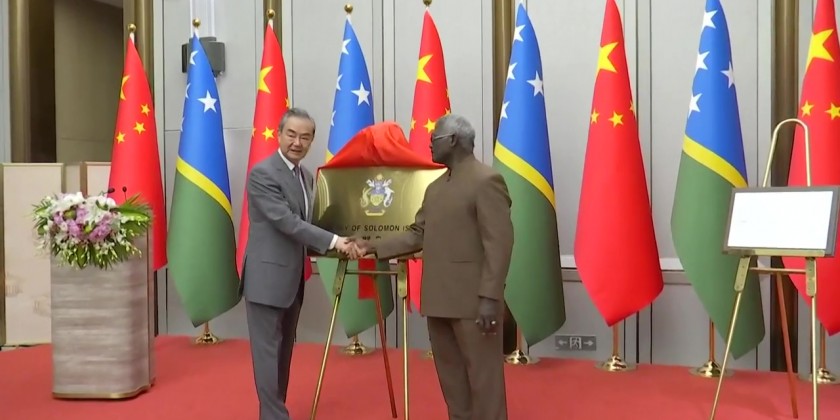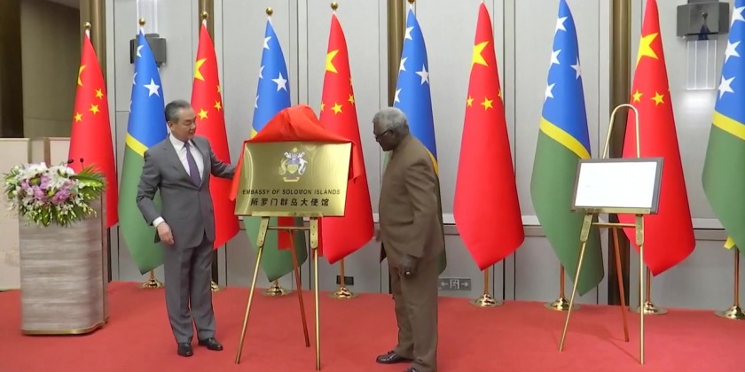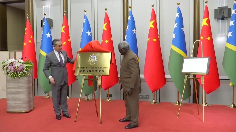 The Solomon Islands opened its embassy in China on Tuesday, four years after the two countries established diplomatic relationship. Senior Chinese diplomat Wang Yi and Solomon Islands' Prime Minister Manasseh Sogavare attended the ceremony in Beijing.