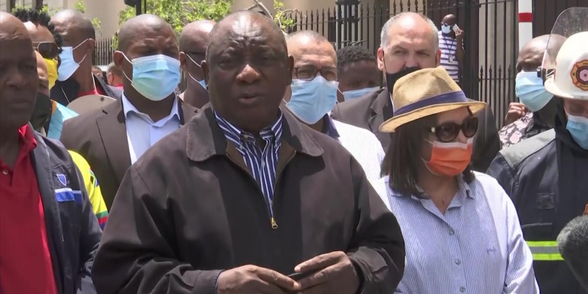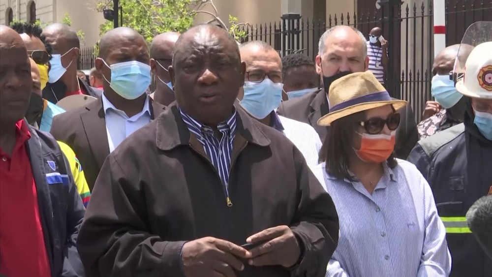 South African President Cyril Ramaphosa praised Cape Town's fire service for their rapid response to a blaze that broke out Sunday in the national Parliament complex.