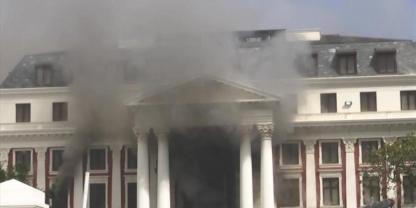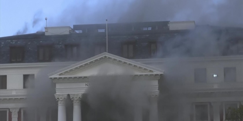 The fire started on the third floor of an old building that houses offices and spread to the National Assembly building, where South Africa's Parliament now sits.