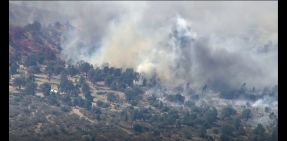 A brush fire near the community of Llano in Southern California's Antelope Valley has destroyed at least two homes. Local media reported that the fire spread to at least 165 acres in the chaparral and light breezes. Fire officials told TV station ABC 7 Los Angeles that the fire has a potential to grow. Residents in the area were ordered to evacuate. No injuries have been reported. The Antelope Valley is about 70 miles or 13 kilometers north of Los Angeles.