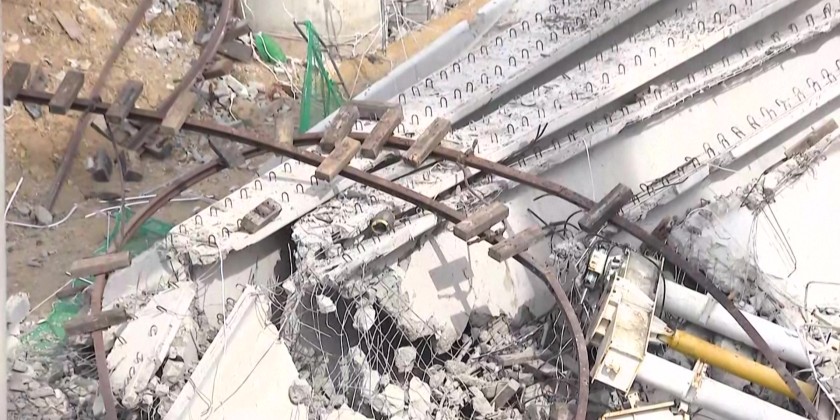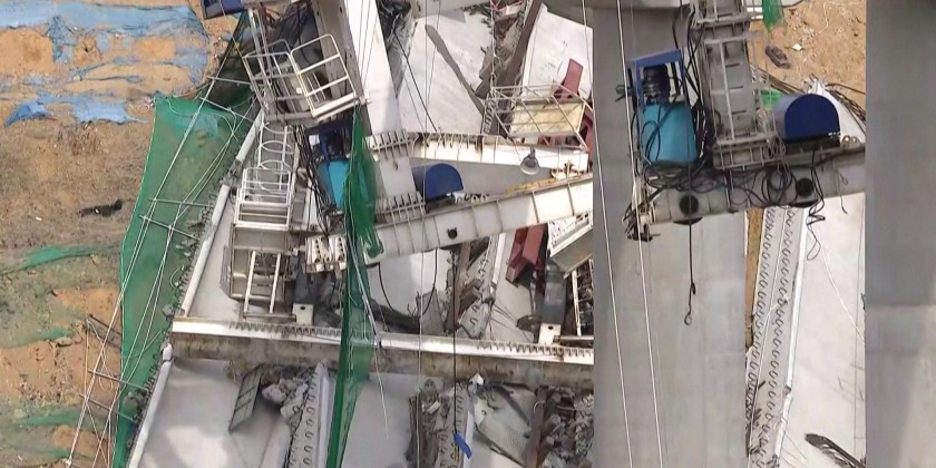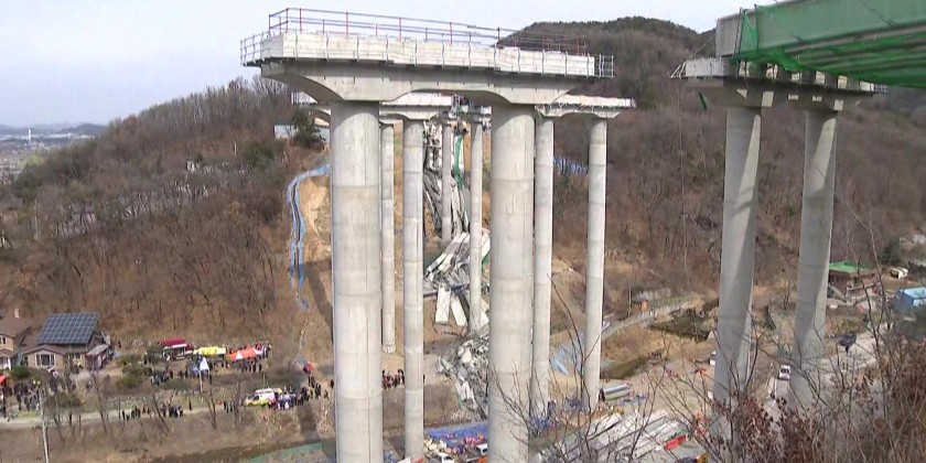 At least three people died and five were injured on Tuesday after a collapse at a highway construction site in the South Korean city of Cheonan, fire authorities said. The accident occurred at 9:49 a.m. when five 50-meter steel structures supporting the highway bridge collapsed one after another after being hoisted into place by a crane.