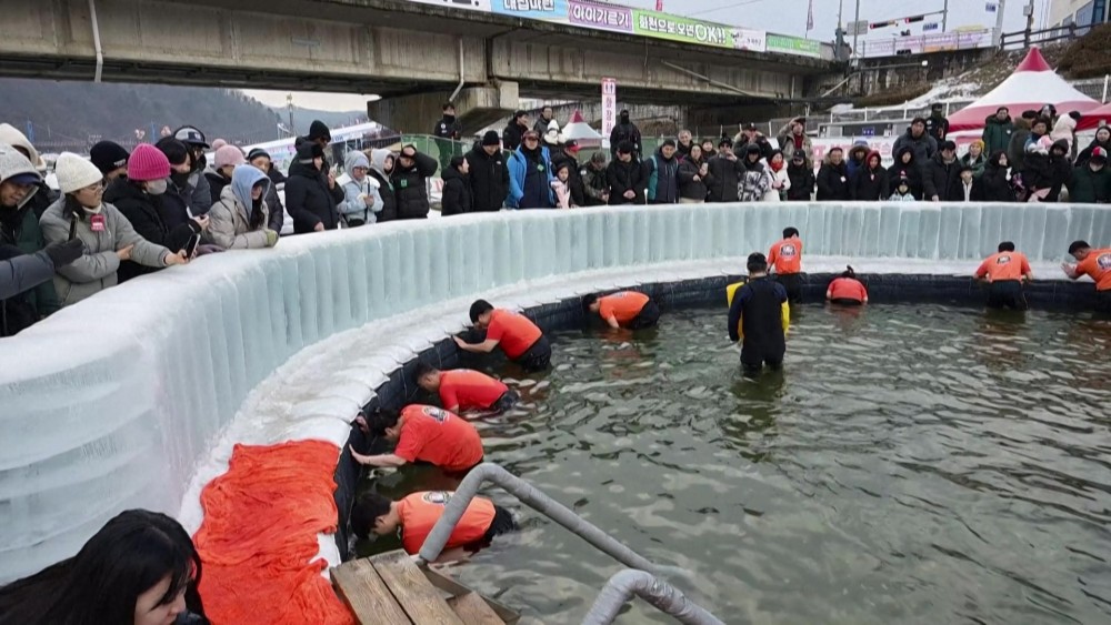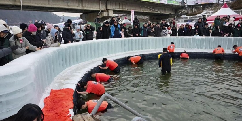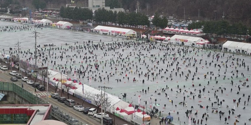 Thousands of people gathered in South Korea’s Hwacheon for the annual Mountain Trout fishing festival. I. Launched in 2003, the event was chosen as the nation's best festival by the Ministry of Culture, Sports and Tourism in 2010 and had drawn more than 1 million visitors for 13 straight years. It is a world-famous annual ice fishing festival, offering weeks of ice fishing and seasonal activities.