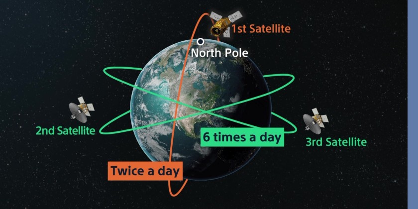 Another upside is a shortened reconnaissance cycle. The first satellite can shoot the Korean Peninsula only twice a day by passing over the Polar Regions. But the second and third satellites can film up to six times a day by orbiting Earth around the equator.