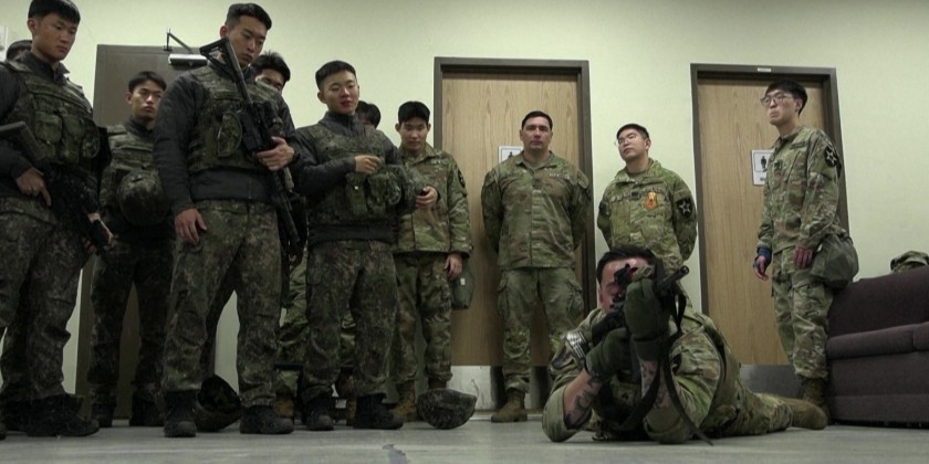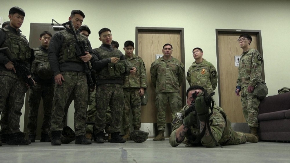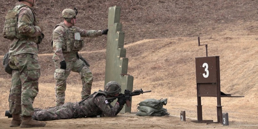 2nd Lt. Steven Lee, 210th Field Artillery Brigade said "The Korean Military Academy, they have a competition coming up in the States in two months, and so essentially what we're going to be doing as Charlie Battery, we're going to be running the range for them and we're going to help them familiarise with M4 since they may not have had hands on with the M4 rifle."
