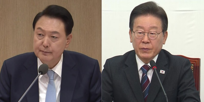 South Korean President Yoon Suk Yeol held a meeting with Democratic Party (DP) leader Lee Jae-myung at the presidential office in Yongsan on Monday. It is the first-ever one-on-one meeting they held since the president took office two years ago.