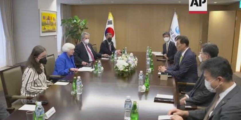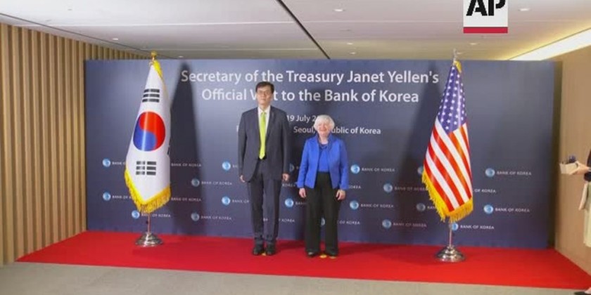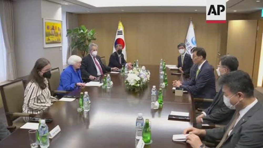 US Treasury Secretary Janet Yellen met with South Korean President Yoon Suk-yeol in Seoul on Tuesday.Yellen is on a two-day visit to South Korea.She visited the LG Science Park, the headquarters of South Korea-based major global battery maker LG Chem and held a meeting with Bank of Korea Governor Rhee Chang-yong.Yellen said earlier that the US and South Korea should deepen their trade ties to avoid letting other countries use their market positions to unfair advantage.