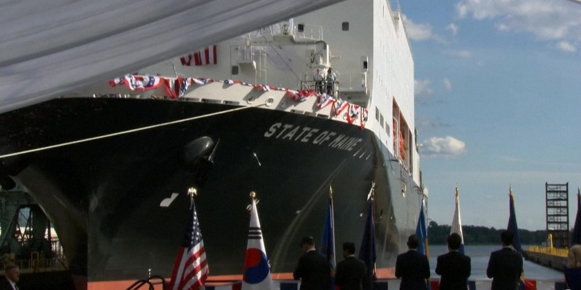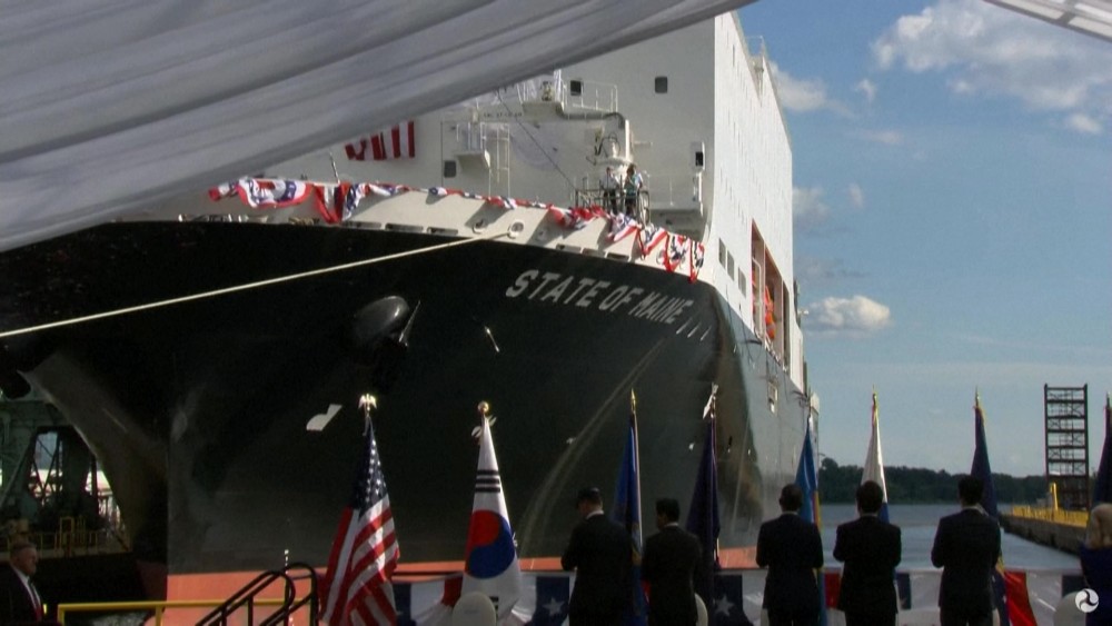 South Korean President Lee Jae Myung participated in the naming ceremony of the "State of Maine" ship on Tuesday at Hanwha Philly Shipyard in Philadelphia.