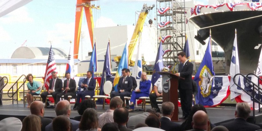 The event, attended by Pennsylvania Governor Josh Shapiro, highlights the cooperation between the US and South Korea. In a congratulatory message, Lee noted that some 50 warships built in the Philly shipward played a role in winning World War II, helping Korea's liberation, and that now Korea has become a power in the shipbuilding industry.