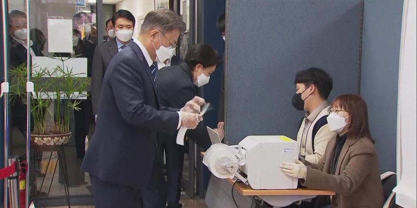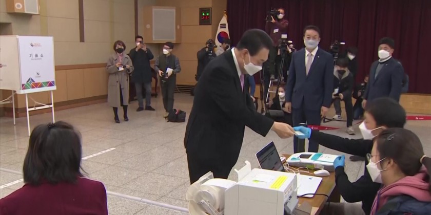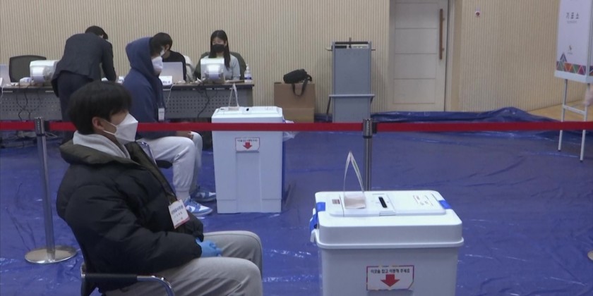 Voters who are infected with COVID-19 or self-quarantining can also cast ballots at temporary polling booths prepared for them during the 1-hour window from 5 p.m. to 6 p.m. on Saturday. Pre-election surveys show a very close race between Lee and Yoon.