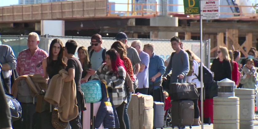Hundreds of flights were delayed or cancelled at San Diego International Airport on Sunday, due to winter storms across the US.