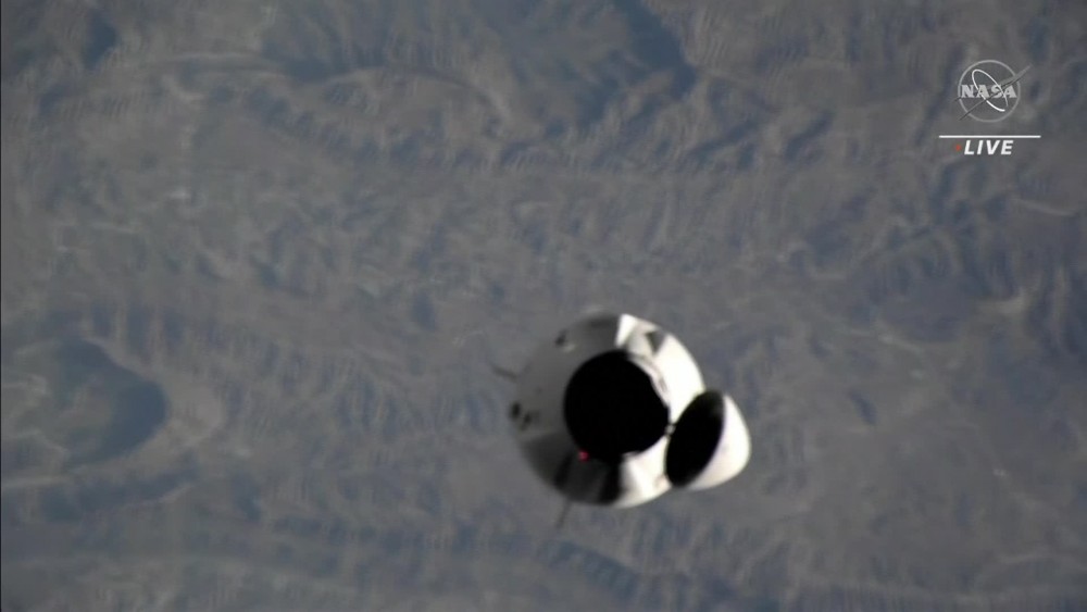 The docking happened at a moment that NASA's cameras were not able to provide live pictures of the event. NASA's two astronauts are joined by one Russian cosmonaut and only the second person from the United Arab Emirates to fly to space. They will replace a U.S.-Russian-Japanese crew up there since October. The docking was briefly delayed while engineers confirmed that software was properly configured for the Space Station's docking mechanism.