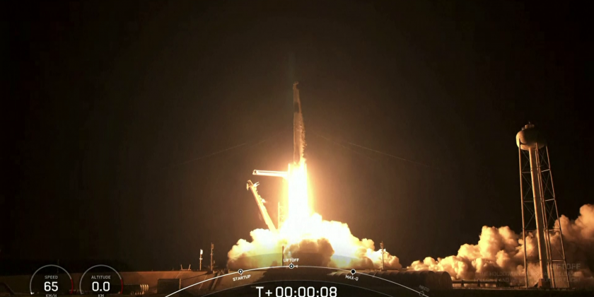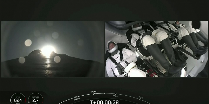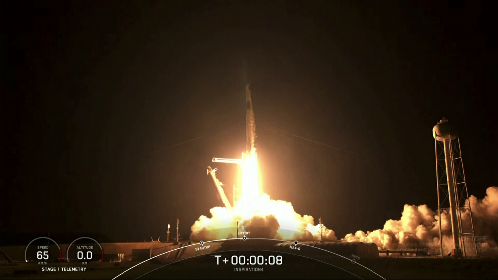 It was the first time a rocket streaked toward orbit with an all-amateur crew, with no professional astronauts on board. SpaceX's recycled rocket soared Wednesday night from the same Kennedy Space Center pad used by the company's three previous astronaut flights for NASA.
